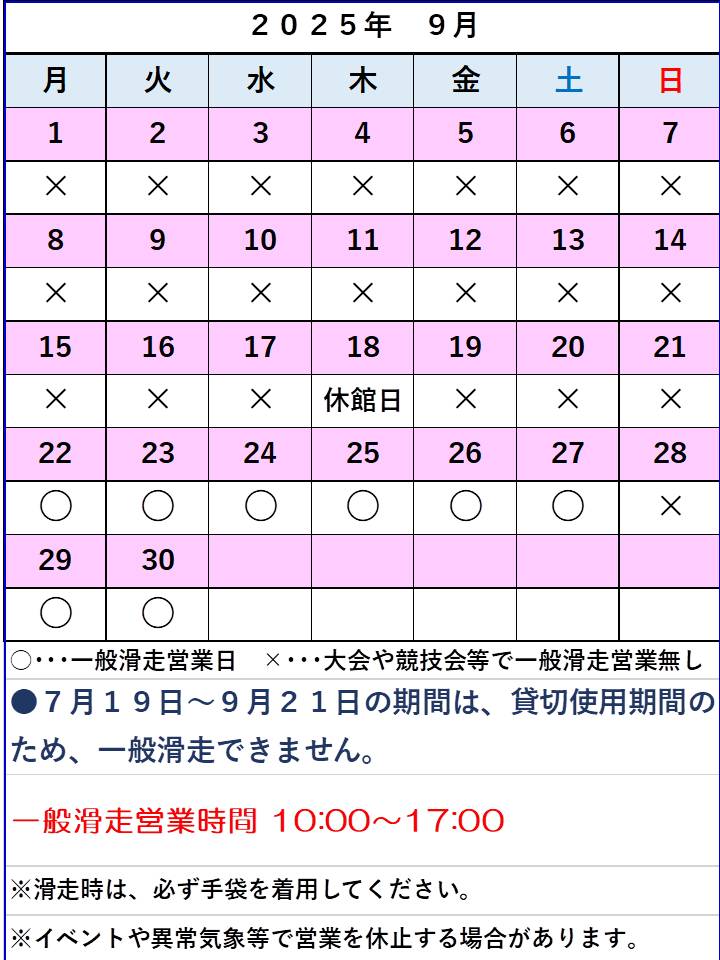 2025年9月 一般滑走営業日