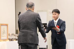 表彰式では、『選手派遣協力表彰』として、国民スポーツ大会や近畿ブロック大会に通算10回に渡り、所属の選手を派遣してくださった「株式会社きんでん」様を表彰いたしました。