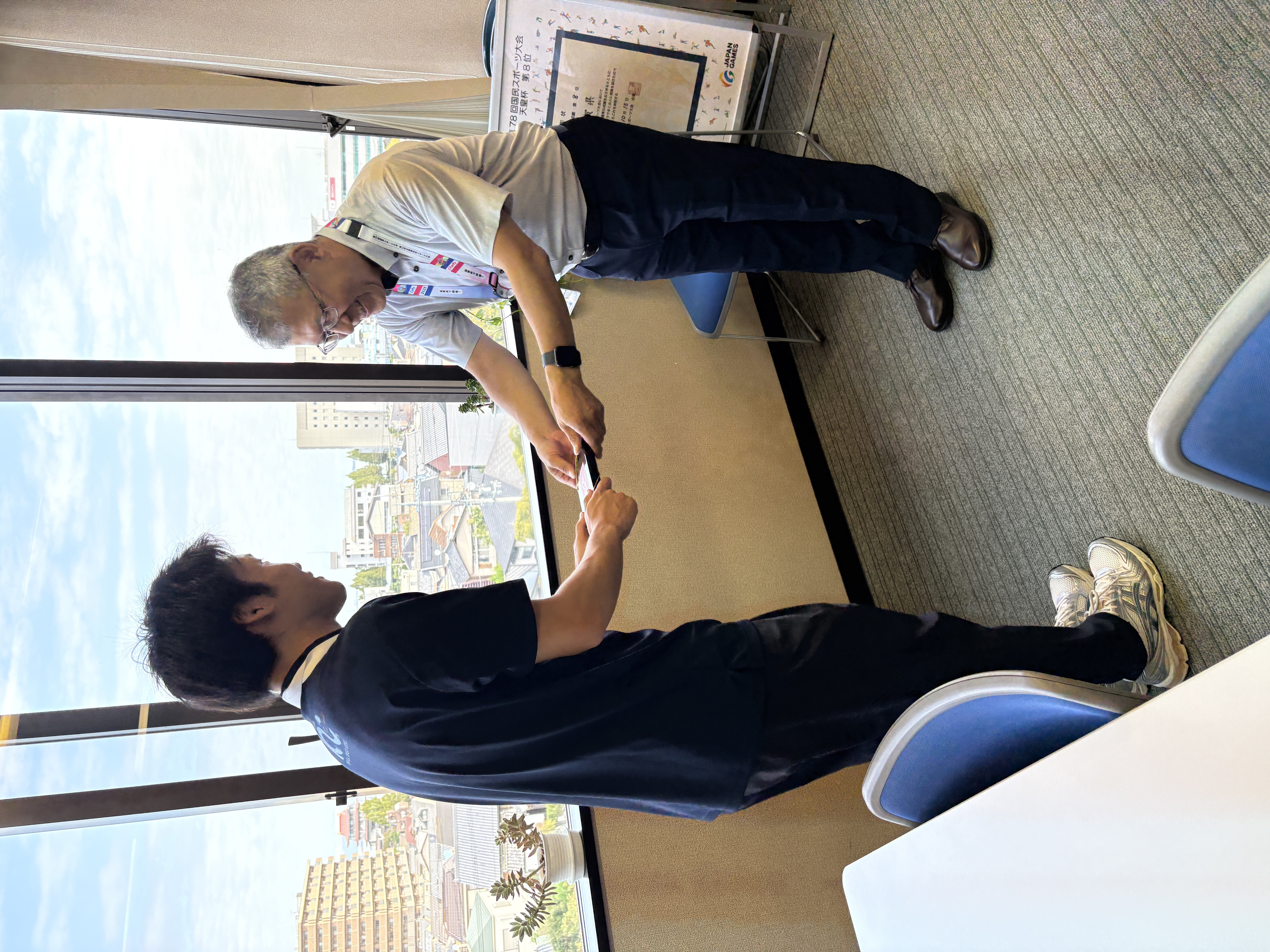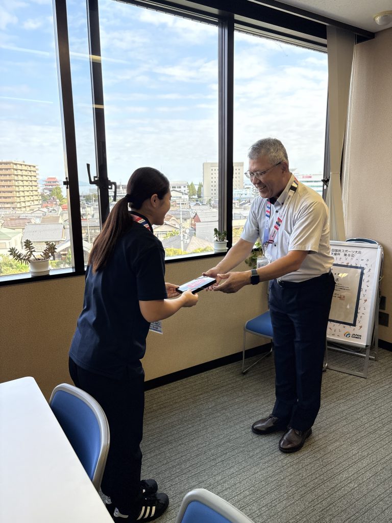 滋賀県スポーツ協会所属でトライアスロン競技に取り組んでいる内田選手、レスリング競技に取り組んでいる藤井選手、ラグビーフットボール競技に取り組んでいる坂口選手が第79回国民スポーツ大会の結果報告!!