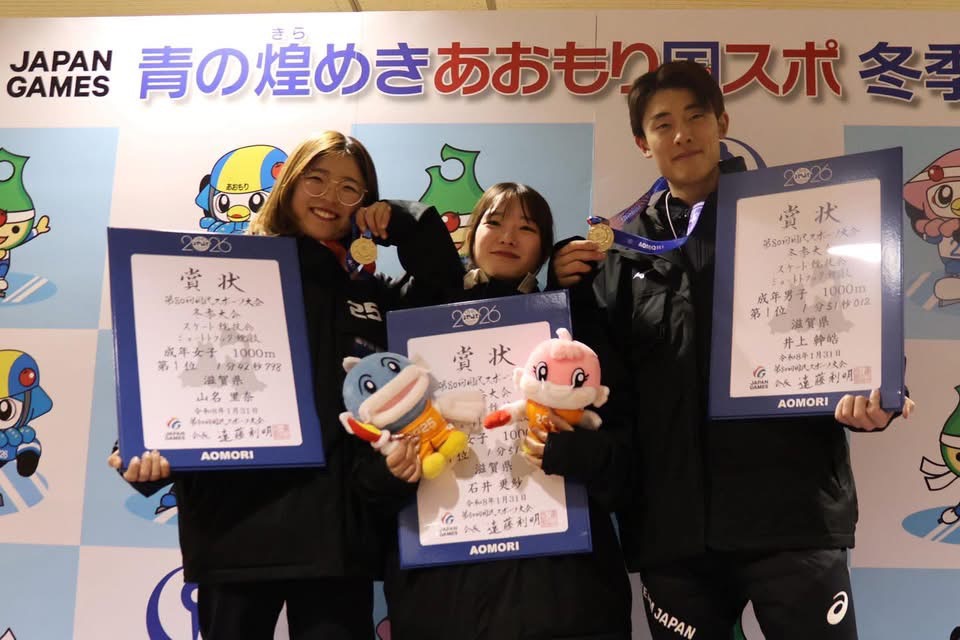 滋賀県スポーツ協会所属でショートトラック競技に取り組んでいる山名 里奈選手、井上 幹皓選手、石井 更紗選手が第80回国民スポーツ大会冬季大会~青の煌めき あおもり国スポ~にて素晴らしい成績をおさめました!!!